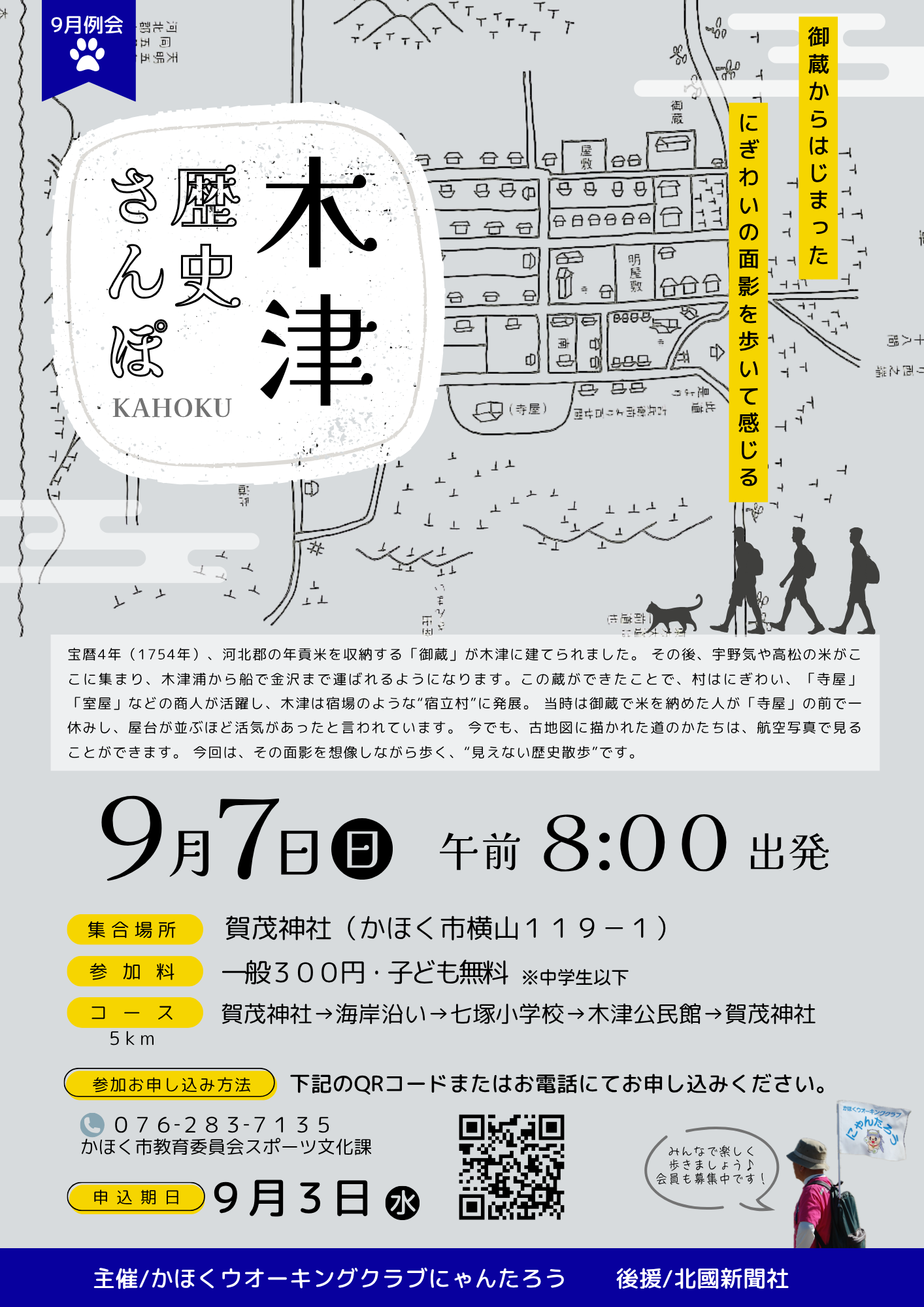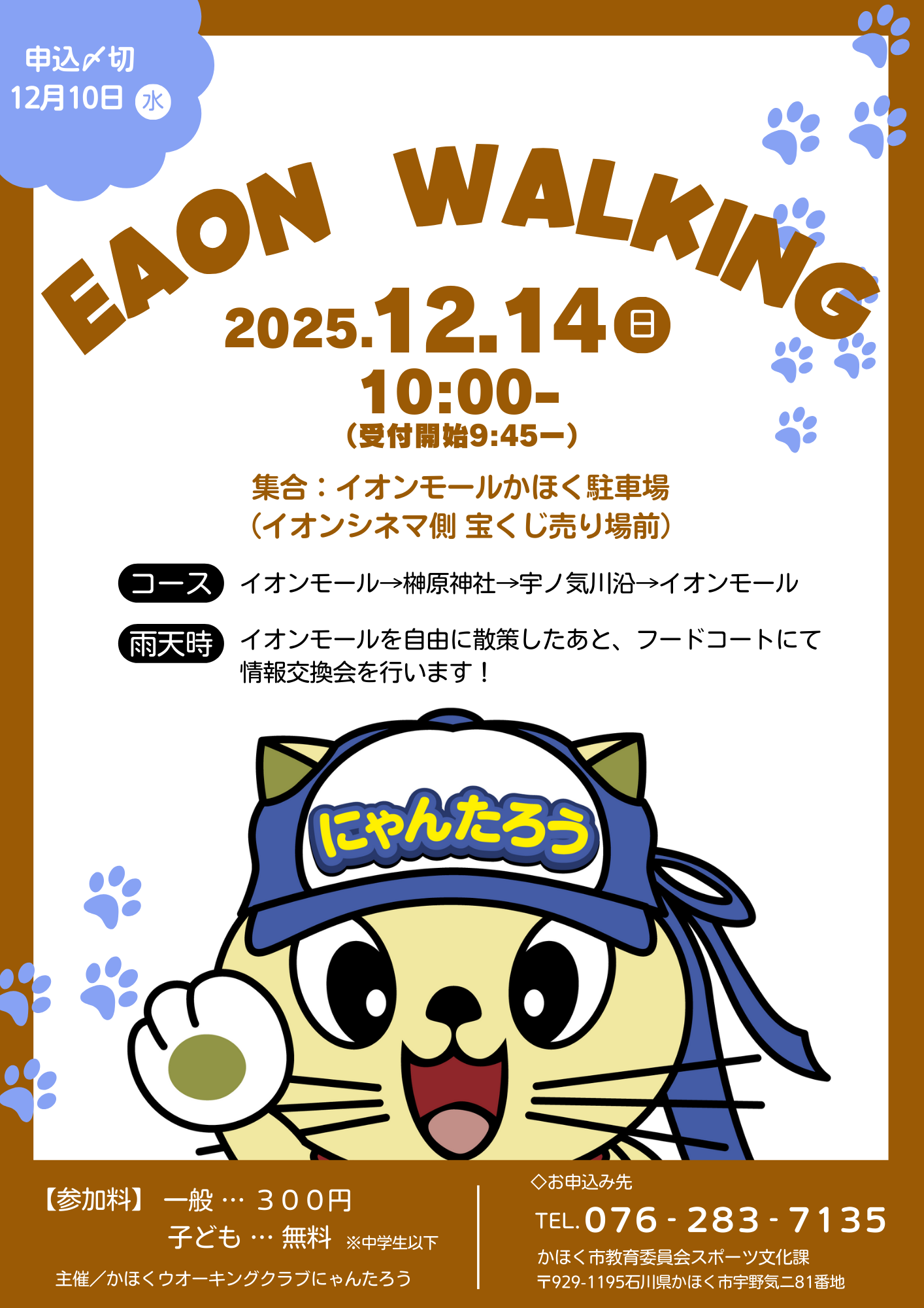 かほくウオーキングクラブにゃんたろう事務局(かほく市スポーツ文化課)